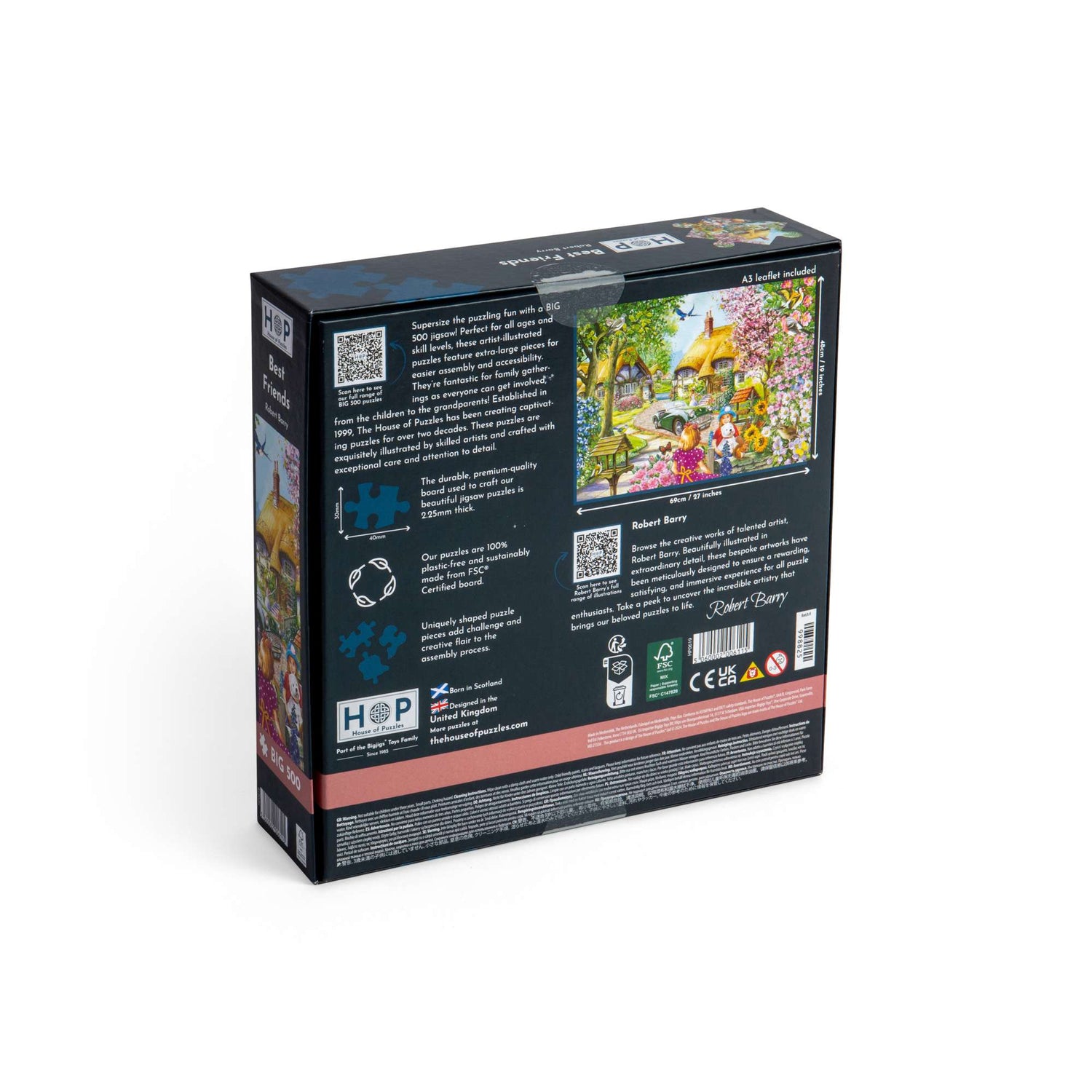 Go large with this Big 500 piece jigsaw puzzle! Illustrated by talented artist Robert Barry, our Best Friends jigsaw features extra-large puzzle pieces which are easier to handle and slot into place. The Big 500 range is a perfect family activity, as the chunky jigsaw pieces enable all ages to join in and work together. All of our Big 500 piece puzzles are sustainably made from premium quality FSC® Certified board, promising a satisfying and seamless assembly experience. Completed puzzle dimensions: 48 x 69cm.