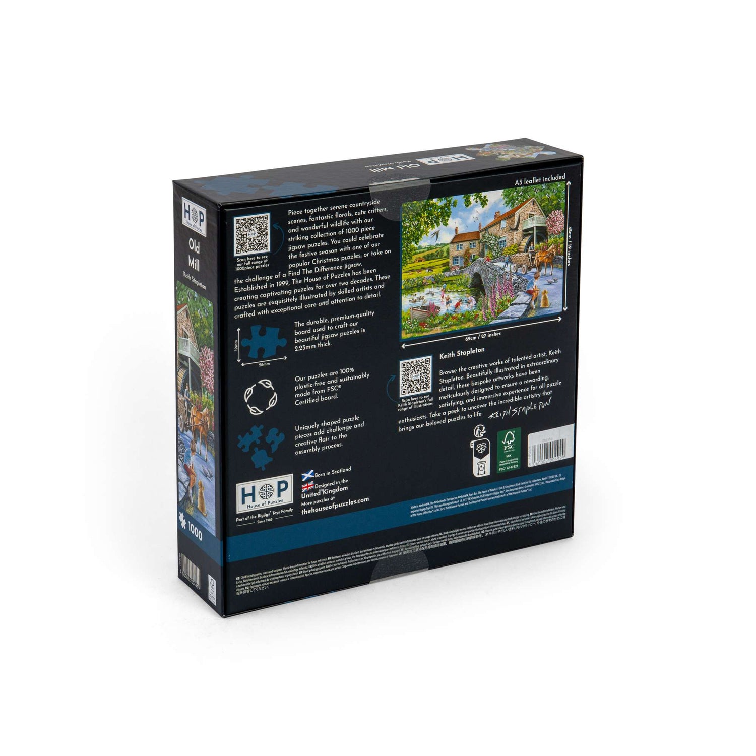 Get ready to start your next House of Puzzles project! Illustrated by extraordinary artist Keith Stapleton, the Old Mill 1000 piece jigsaw features a beautifully detailed scene to captivate both beginner and seasoned puzzle fanatics! All of our 1000 piece jigsaw puzzles are sustainably made from premium quality FSC® Certified board, promising a satisfying and seamless assembly experience. Completed puzzle dimensions: 48 x 69cm.